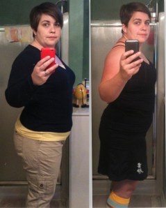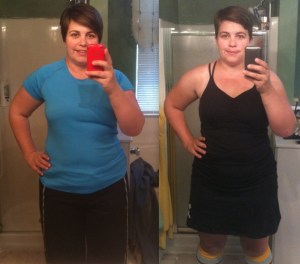 Because I lost another inch out of my hips and a 1/4 inch out of my arms. My total is now 15 inches are officially gone from my body. I am so excited to see some forward movement again in my weight loss. So the kettlebells are what pushed me out of this plateau 😀 Yes I cut off more of my hair than usual. It’s just about a pixie cut and I’m loving it for this hot summer that we are now thrown into. Yes I know I’m not wearing the same outfit but I promise my next progress picture I will dress in the exact same shirt and my skirt so you can see better. Those pants got trashed after I ran the Dirty Girl 5k so sorry I can’t put them on for comparison. 😀