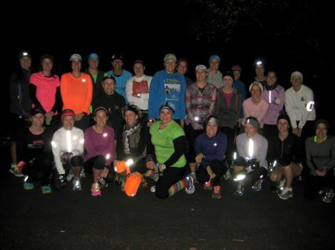 I woke up way to early on Turkey day to go meet up with my MRTT ladies. Here we all are. I’m the neon green one front and center. I wore my rainbow socks just for the occasion. Plus my headlamp b/c it was still dark.