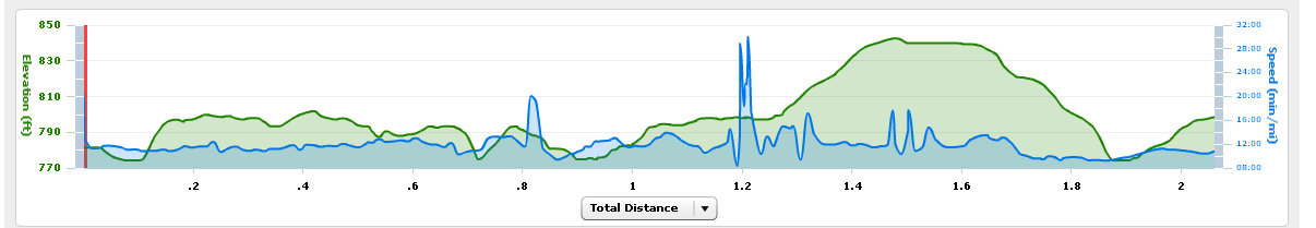So on Sunday, we went down to the lake and OMG!!!! it was painfully cold. We don’t have wetsuits so that was the end of our lake swim. I just couldn’t do it and it was still in the 50’s for air temp. So we got on our bikes and did our bike route followed by the run route. We got a friend out on the road for the first time (yay!!!) and then we set out for our run. We stayed in pairs, so two went off ahead and ended up doing 6 miles total. Me and my friend (the one that we got on the road) stayed together. She needed me to pace her (i.e. slow her down) and I needed her to let me talk her ear off so I could distract myself. Well it worked. I ran the entire tri run route without stopping (except for a massive puddle we had to walk around and that doesn’t count). Plus I kept it right at a 12 min/mile pace which is what I want to do for the race. Overall, I am thrilled. 🙂 That funny blimp at 1.2 was that stupid puddle.